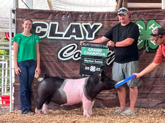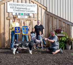 ![]() Grand Champion Hampshire Barrow 2025 Indiana State Fair Shown by Cade Grant Bred by Butts Farms, WI Sired by Hands Down |