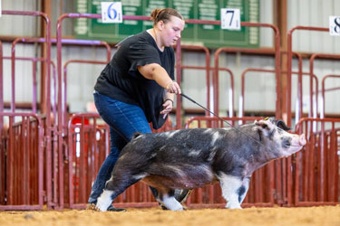5th Overall D1 Dark Cross Barrow 2025 Indiana State Fair Shown by Eleanor Newcom Bred by Chad Day Showpigs Sired by Sleep Tight |
