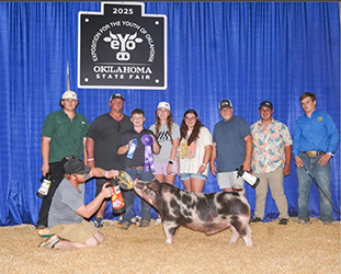 ![]() Reserve Champion York Barrow 2025 Oklahoma Youth Expo Shown by Kendyll Dun Bred by Robin Ridge Farms Sired by No Hesitation |