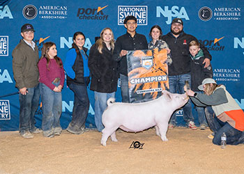 ![]() Champion Yorkshire Barrow 2025 American Royal Spring Show Shown by Kendyll Dun Bred by Robin Ridge Farms Sired by No Hesitation |